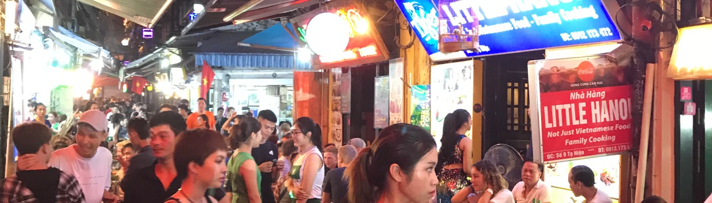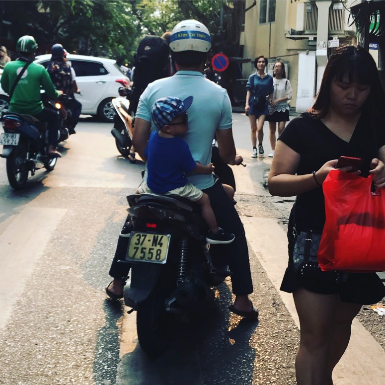 The street market is in the heart of the Old Quarter, on Phô Hàng Dào. It was a mixture of designer rip offs (I was quite tempted by a pair of Apple buds, but couldn’t summon my haggling strengths!). (Also. The thing about rip-off Ray Bans/* is they’re only really tempting if you don’t have a genuine pair…) Anyway. Mixture of designer rip offs, tourist tat, and cheap hippy trousers. But lots of lovely street food stalls! I’ve eaten a pork kebab, some shrimp gyoza and a deep fried crab roll. All for less than a fiver. Oh. And something called smoke ice cream, which is basically oversized Rice Krispies with some food colouring dipped in dry ice. Weird. And tasteless. But now I know…