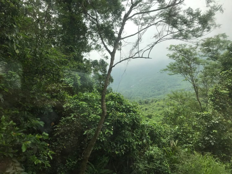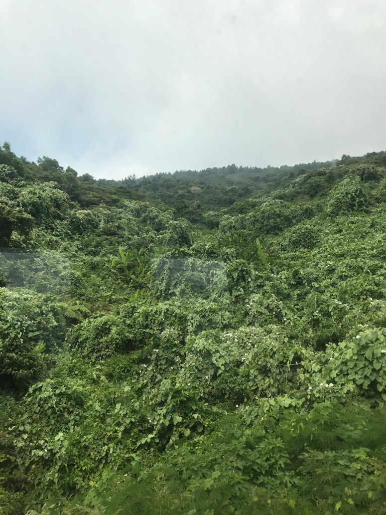 Even on the mountain side of the train, the views uphill were beautiful, when the undergrowth was clear enough to see them. We were not far below the cloud line, and there were stands of banana, ferns, many trees I’m simply not skilled enough to recognise, and the whole thing considerably choked by bindweed! It would’ve driven my father mad! He has waged a war of attrition on bindweed in every garden he’s ever been in charge of…