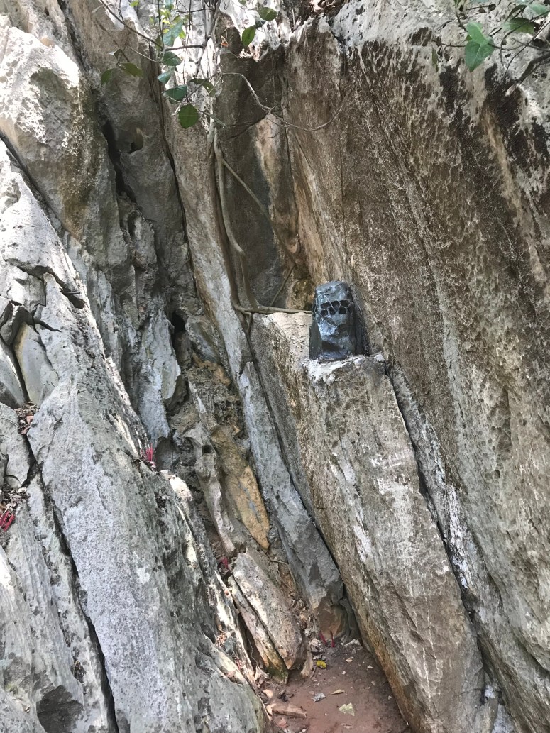 To be fair, the driver probably did me a solid. There were steps. Lots of steps, carved into the marble. And lots of tourists. The pagodas I saw were impressive, and obviously thriving; a community of monks and nuns was very much in evidence. I scrambled up into a cave, and had to downclimb out of it, which was never my favourite kind of climbing to do – but probably still marginally more elegant (not to mention reverend) than sliding out on my arse.