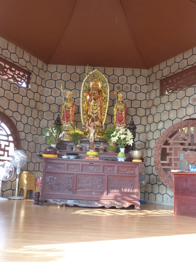 We were heading to the home of a family who live in an old style Mekong house, over 100 years old. They maintain an organic mango farm, which Toby insisted produced the best mangoes in Vietnam. He got us one, and it was pretty bloomin’ good! *So* tasty. We had a cup of salty lemon juice to wash it down, admired the family house and ancestral shrines, and then we were on our way again.