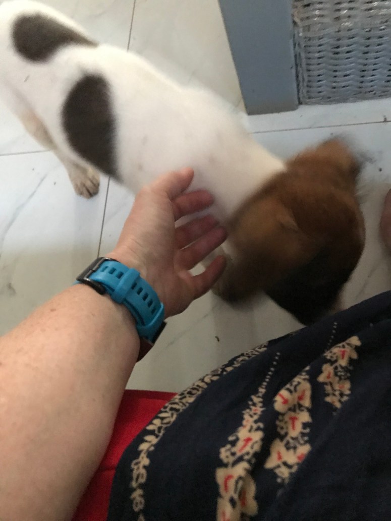 When we arrived at the hotel, everything was locked up and I have zero mobile service, here, so Davin called them up and the receptionist eventually emerged to let me in. I sat in reception feeling gritty, and the proprietor appeared and let me know that my room would be ready in an hour, which was very welcome news. Davin was returning at 9 for the shenanigans to begin so that would give me time to shower and change. And scritch the puppies..! And just as I was getting all soppy about puppies, one of the toothy little nuggets stole my shoe and ran away to the scrubland opposite the hotel with it! I wonder what the neighbours thought about the overheated Western woman hopping after the dogs, letting off a stream of English they’d never find in text books….!!