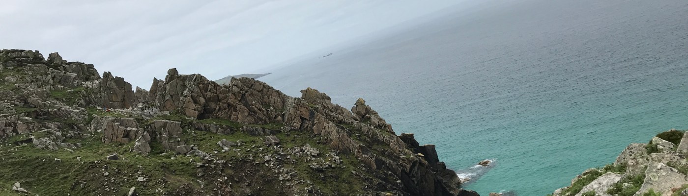 Today we went to St Ives and, since we’re staying in St Just, we drove through Trewellard and Pendeen.  Through several years’ worth of ghosts of my youth.  I was delighted the Trewellard Arms Hotel is still standing and seemingly doing a roaring trade.  I have drunk many a post-climb, yarn-spinning pint in that pub. Watching my companions’ bodies contort, their arms and legs moving in narrative remembrance as we share the stories of holds reached for, jugs found in moments of need, off-widths we’ve left skin in. As we drove past it, I realised that if we were on *this* road, heading in *this* direction, we’d be passing the cliffs of Bosigran.